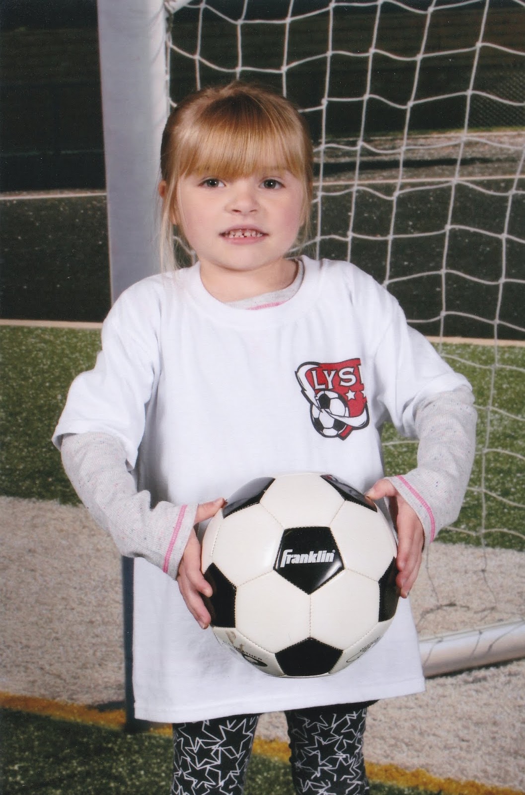 May I also present Gracie's first official season picture ... finally. We just got it last night. I'm thinking the coach handed them out earlier, but Gracie was probably sick that day. Anyways, check out those guns. I don't think I'd mess with that halfback.